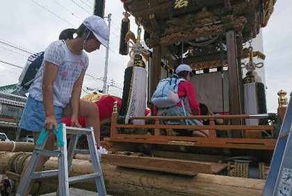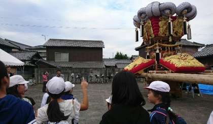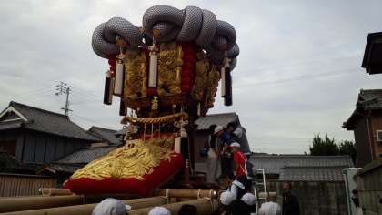 地元の方のご好意で、ちょうさ(祭りの太鼓台)の見学をさせていただきました。