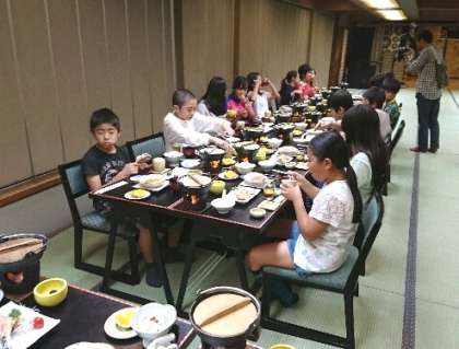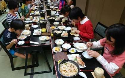 琴平のホテル八千代での夕食。うどんもきっちり出ています。