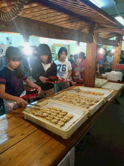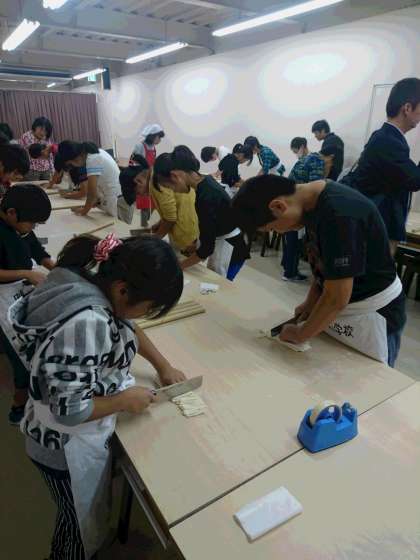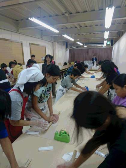 うどん学校の卒業証書をもらった後の昼食は、もちろんさぬきうどん。具材を自分でとってトッピングして食べました。