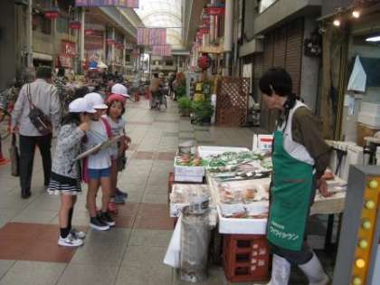 8班に分かれて、それぞれの担当のお店におじゃまし、質問にも答えていただきました。今日学習したことはまとめて、班で発表する予定です。