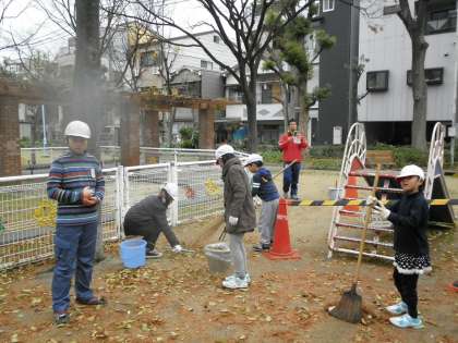 土曜授業の3時間目は、港中学校1年生とコラボによる「ふれあい清掃」!学校周辺の公園を美しくしました!