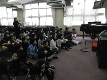 下:音楽室で交流です♪6年の歌声は、最近の評判モノです♪
