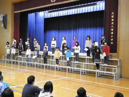 今回は「暗唱大会」「異学年交流会」「小中合同ふれあい清掃」と盛りだくさんの内容となりました。当日は、多くの保護者や地域の方々も参加していただきました。寒い中、ありがとうございました。