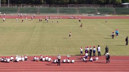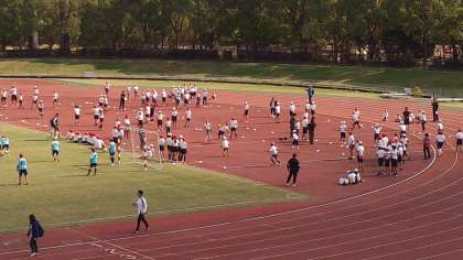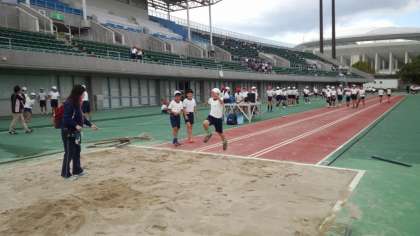 午後は長居第2陸上競技場で、サッカーやドッジボール、走り幅跳びや大縄などで他校の小学生と交流しました。
