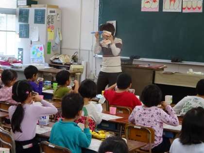 今日1・2年生の歯みがき指導を行ないました。歯みがきの習慣と正しい歯みがきの方法を身につけて、じょうぶな歯で健康的な生活を送るようにしたいですね。