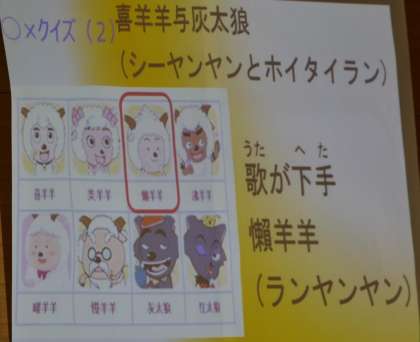 中段:中国で有名なアニメキャラクターです。〇×クイズで出題されました。