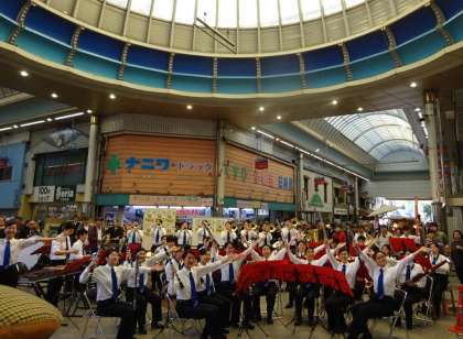 「キッズバンド八幡屋」に続いて、築港中学校、港高校、市岡高校の生徒の皆さんが演奏し、観衆の皆さんを楽しませてくれました。その後もダンスや演奏、夜店が続きます。