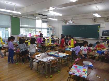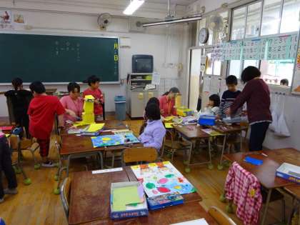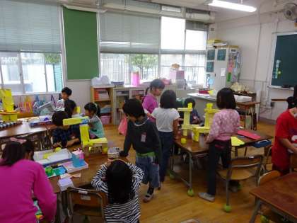 11/15 作品展用の工作仕上げ(1年生)