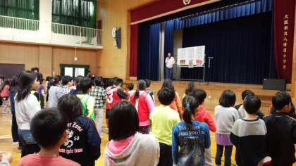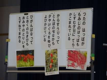 児童集会の後、今月の歌「まっかな秋」を合唱しました。