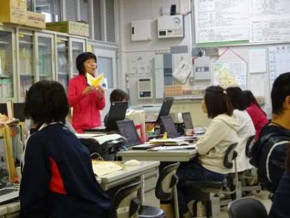 職員会議の後、外国語学習(歌と英語の絵本を使った学習)とICT活用(学習アプリを使った学習)のミニ研修をしました。