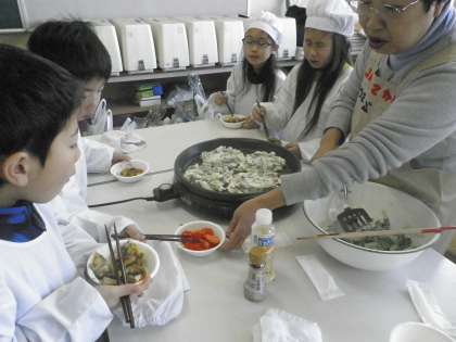 青ネギのチヂミだけでなく、青ネギたっぷりのすき焼き、そしてフルーツトマトと、野菜尽くしの食育に、食欲は大満足でした。