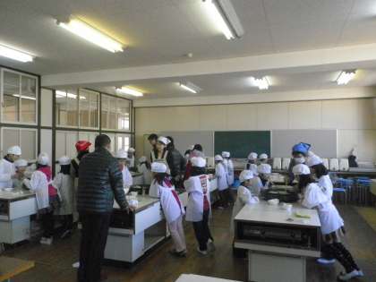 上:やり方の説明を聞き、あとは立派な料理人です。