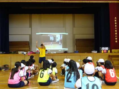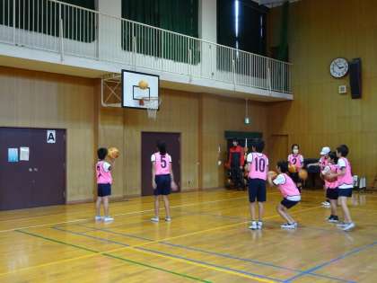 区の体育部の研究授業として、6年生のバスケットボールの授業を他校の先生にも参観していただきました。