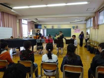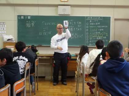 中段:美術の授業体験。いろいろな作品が描かれているカードえお使って、「しりとり」をしながら、ゲーム形式で行いました。最後におもしろかった作品について先生が解説されました。