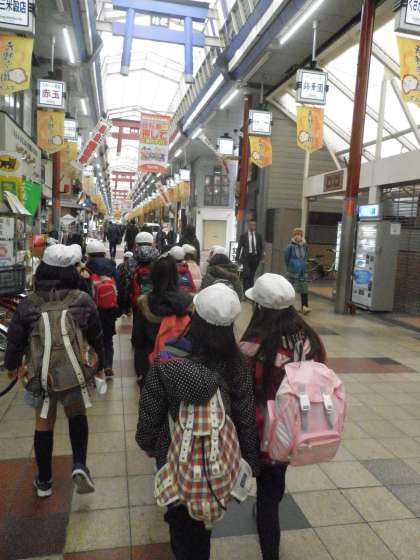 大阪くらしの今昔館は、天神橋筋6丁目にあり、日本一長い商店街につながっています。受験の神様と言われる大阪天満宮まで、長い長い商店街をひたすら歩きました。境内には、たくさんの大学合格祈願をする高校生の姿がありました。数年後には、この子たちも訪れることでしょう。