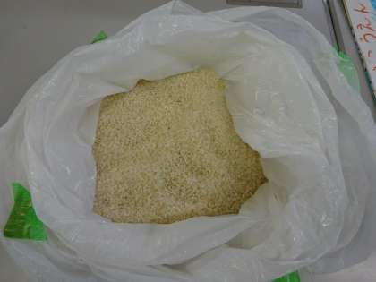管理作業員さんが「もみすり精米機」のある南河内郡河南町まで行って、精米したお米を持ってきてもらいました。約4Kgあります。