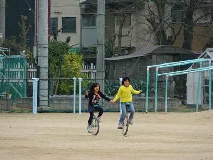 冬休みに入り、学校もいきいき活動の児童だけになりました。運動場でタコ揚げや一輪車で元気に遊んでいます。