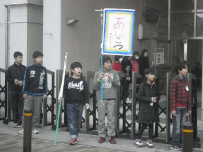 八幡屋小学校の児童が、元気よくあいさつができるようにしょう!と「あいさつキャンペーン」を代表委員が考え実行しています。