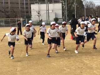 来週1月26日(木)に行われる小中合同駅伝大会に向けて、練習会に行ってきました。今年は中学2年生の皆さんが優しくたくさんのことを教えてくれました。走り方のトレーニング法を教えてもらい、いろいろな動きをしました。 最後は小学生が鬼で鬼ごっこ。なかなか中学生はつかまりません。さすがです。