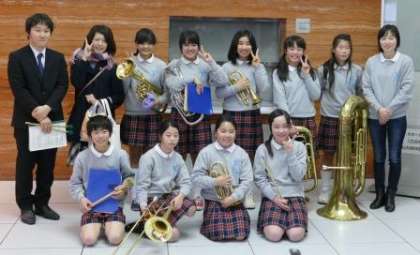 演奏が終わった後、集合写真を撮りました。去年までキッズバンドを指導していただいた先生も演奏を聴きにきてくださいました。