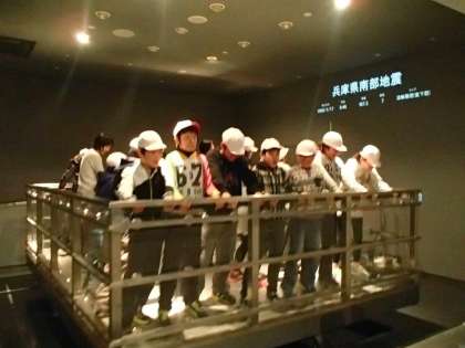 中段:震度7の体験。兵庫南部地震(阪神大震災)や東日本大震災の地震の揺れを体験しました。