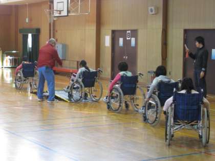 「大阪市立心身障がい者リハビリテーションセンター」の職員の方に「車いす体験」の講習をしていただきました。