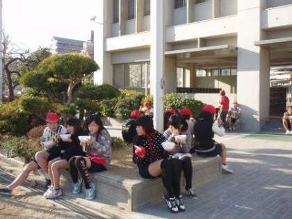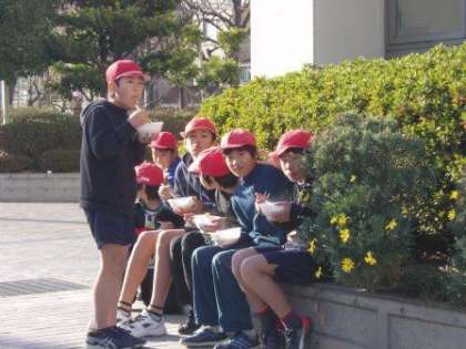 閉会式の後は、PTAの方に作っていただいた「とん汁」が待っています。「おいしい」「おいしい」とおかわりしていました。ふだん小食の女子もおかわりしていたのでびっくりしました。