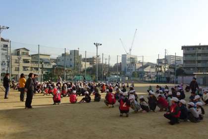 下段:児童集会・キッズタイムのリーダーが5年生にバトンタッチしました。児童集会は宝探し。ヒントの書いた紙を見つけてさがします。