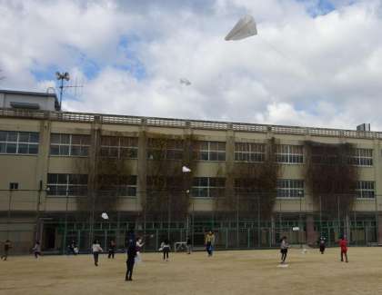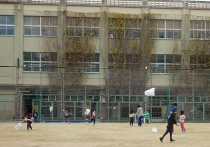 授業で作ったたこを運動場でとばしました。風もそこそこあったので、楽しかったようです。