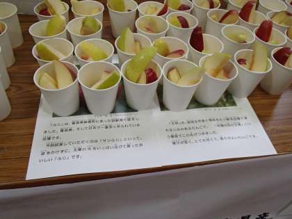 青森県から来ていただいた三村知事はじめ講師とスタッフの方々、今まで知らなかったりんごのことについてくわしく教えていただきありがとうございました。大阪中央青果の方々にも大変お世話になりました。
