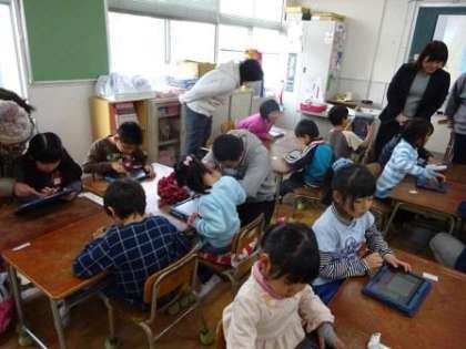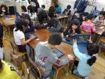 今日の2時間目に続いて、「タブレットをつかおう」の3時間目。保護者の方とタブレットを使いました。1年生はタブレットの3回目で、けっこう使いこなしています。