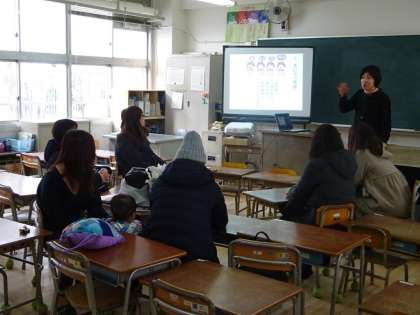 口の体操「あいうべ」など、子供たちに取り組ませていることを中心に懇談会で話し合いました。