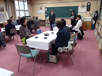 八幡屋小学校教頭の離着任式が図書室で行われました。また、港中学校の大塚校長も午前中に離任式をされました。池島小学校でも教頭先生の離着任式が行われました。