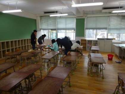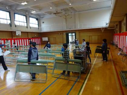 今日は新6年生が新1年生のために講堂の準備や教室・廊下等の清掃をしました。重たい荷物を運んだり、すみずみまで丁寧に清掃したりして、新入生を気持ちよく迎えるためにがんばっていました。また、新2年生は入学式に新入生を迎える練習をしていました。大きな声で発表したり心をこめて演奏したりして、新入生を温かく迎える練習をしていました。明日が楽しみです。