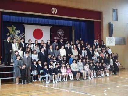 下段:新入生と保護者の方がそろって記念写真。6年後の卒業式で成長した姿が楽しみです。