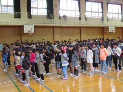 お話のあとはいよいよ担任発表です。みんなわくわく・どきどき。今年はどの先生が担任だろうと、校長先生の発表を目を輝かせながら聞いていました。その後は校歌を歌って始業式を終わりました。みんな元気よく校歌を歌っていました。