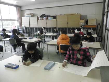 各級に分かれ、挑みました。級ごとに受検会場(教室)を設けましたので、他学年の児童と受検の教室もありました。