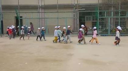 1年生がはじめて2年生から6年生までのお兄さん、お姉さんと顔を合わせました。