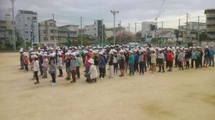 下段:早く一年生に覚えてもあえるよう、元気よくみんなで校歌を歌いました。