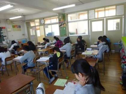 今日は6年生が全国学力・学習状況調査を受けました。1時間目から国語・算数のA問題に取り組み、国語B問題、算数B問題、最後が質問紙でした。どの児童も一生懸命問題に取り組んでいました。