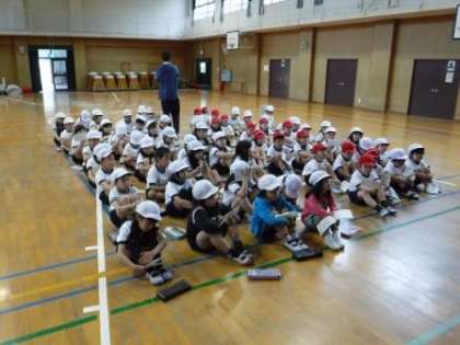 今日は講堂で1・2年生合同の遠足事前指導がありました。遠足の場所は長居公園です。持ち物やルールを聞きました。初めはわくわくしていた児童も、次第に真剣に話を聞くようになりました。