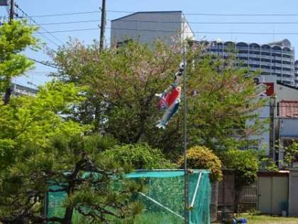 今日は天気がよく、学校にあるこいのぼりも気持ちよさそうに泳いでいました。こいのぼりの近くにある桜の木はずいぶん緑が多くなり、季節の移り変わりが感じられる一日でした。端午の節句頃の桜の木はどうなっているのか楽しみです。