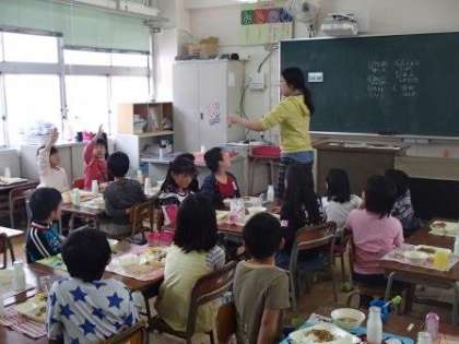 今年からO先生が児童に給食や栄養指導の授業を行っています。4月24日から全学年に栄養指導を行います。給食時間に児童に給食や食べ物の栄養について、絵や表をつ使いながら児童にわかりやすくそして楽しく話をしていきます。