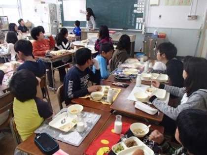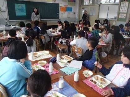 今年の八幡屋小学校は栄養指導や親子給食と給食について盛りだくさん。児童も4月は給食を残さずおいしくいただきました。