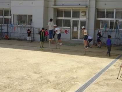 天気がよかったので、児童は休み時間に元気に運動場で遊んでいました。竹馬・一輪車・うんていなどそれぞれが友だちと楽しく体を動かして遊んでいました。頑張れ!八幡屋っ子!たくさん遊んで、いっぱい体力つけよう!