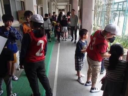 今日からキッズタイムが始まりました。1年生から6年生までグループをつくり一緒に遊ぶ時間です。週に一度、2時間目と3時間目の間の休み時間に6年生が中心となっていろいろな遊びをします。