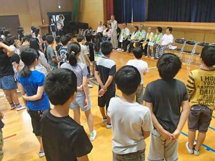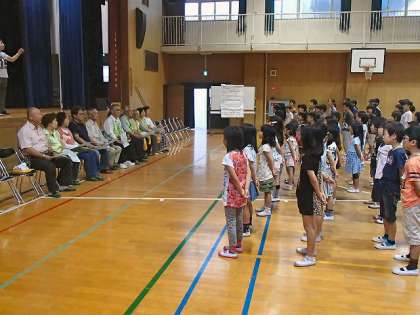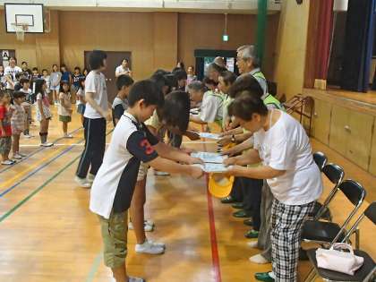 上 全校児童を代表して6年生から感謝状を贈呈しました。