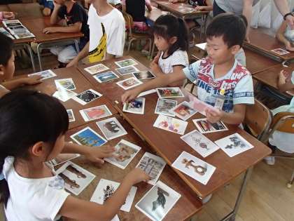 二枚のカードの共通点を探す「マッチングゲーム」や誰かにプレゼントしたいカードを選ぶ活動をしました。