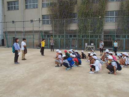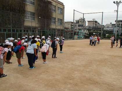 中 お見送りの保護者の方たちへ「行ってきます。」
