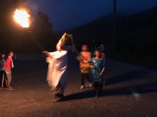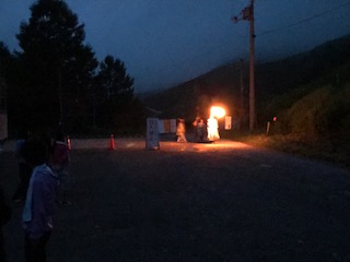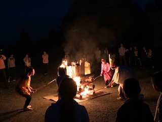 火に感謝する、キャンプファイヤーの始まり始まり。